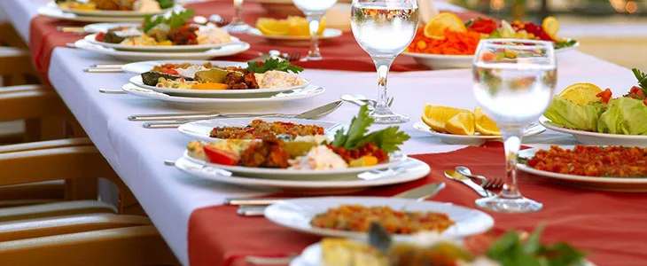 Nous veillons à vous offrir des repas sains et équilibrés. C’est pourquoi, nous prévoyons toujours deux variétés de légumes chauds et un buffet de salades varié.
